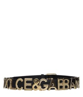 Dolce & Gabbana Black Leather Gold Metal Logo Engraved Buckle Belt
