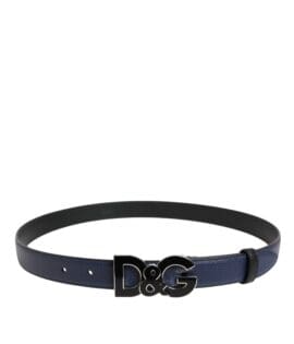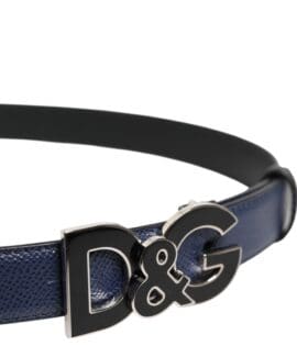Dolce & Gabbana Blue Leather Classic Metal DG Logo Buckle Belt