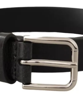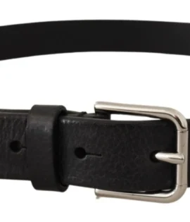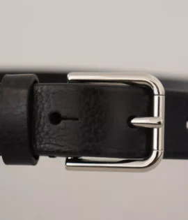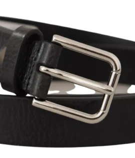 Dolce & Gabbana Calf Leather Silver Tone Black Metal Buckle Belt