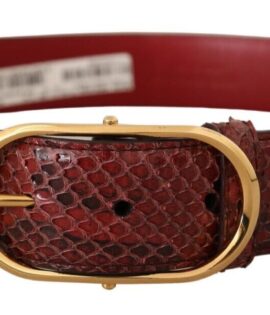 Dolce & Gabbana Red Exotic Leather Gold Oval Buckle Belt