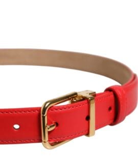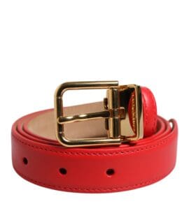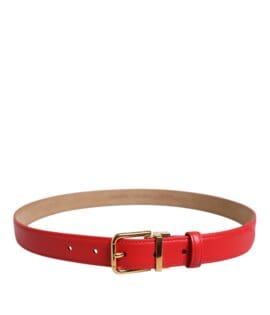 Dolce & Gabbana Red Leather Gold Metal Buckle Cintura Belt