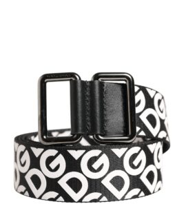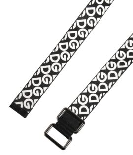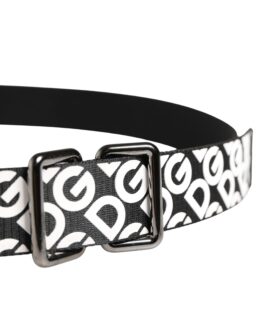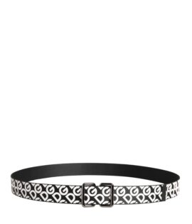 Dolce & Gabbana White Black Logo Leather Metal Buckle Belt