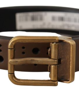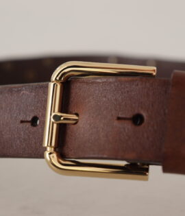 Dolce & Gabbana Brown Leather Gold Metal Buckle Classic Belt