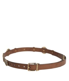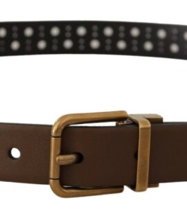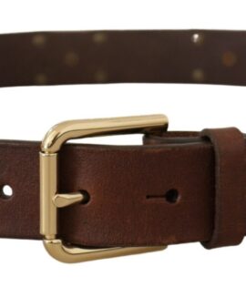 Dolce & Gabbana Brown Leather Studded Gold Tone Metal Buckle Belt
