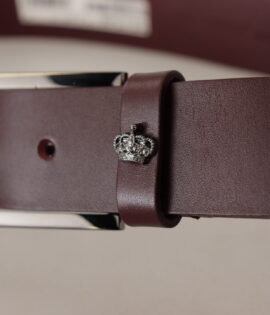 Dolce & Gabbana Brown Leather Silver Metal Crown Buckle Belt