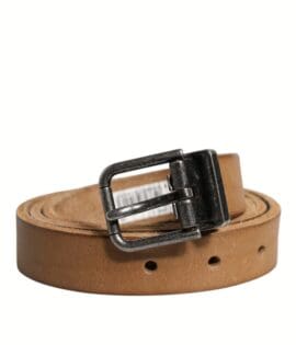 Dolce & Gabbana Brown Leather Silver Tone Metal Buckle Belt