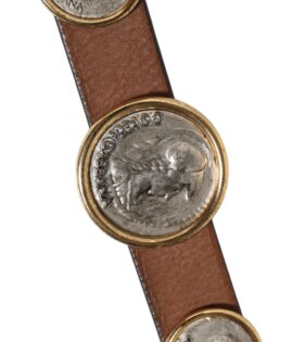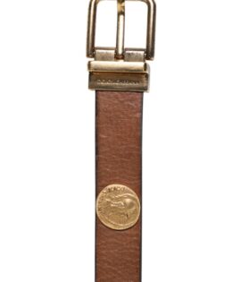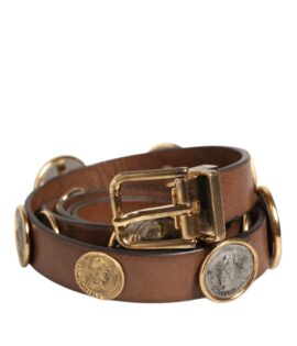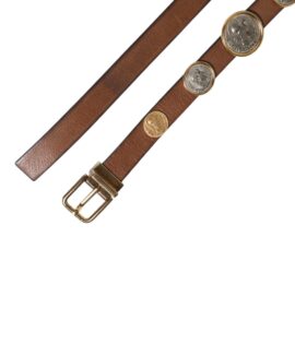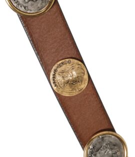 Dolce & Gabbana Brown Leather Gold Silver Coin Buckle Belt