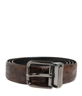 Dolce & Gabbana Brown Logo Engraved Metal Waist Buckle Belt
