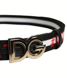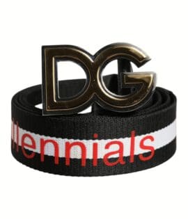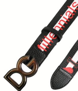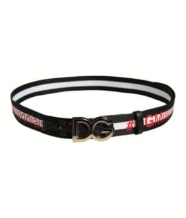 Dolce & Gabbana Black Cotton Logo Print DG Buckle Belt