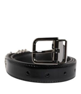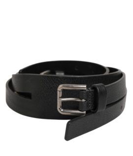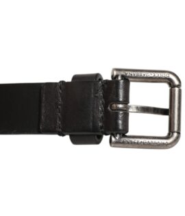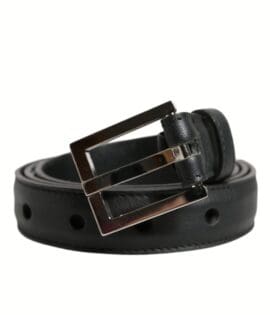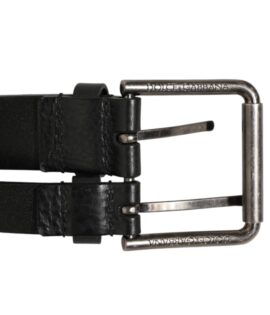 Dolce & Gabbana Black Classic Calf Leather Silver Buckle Belt