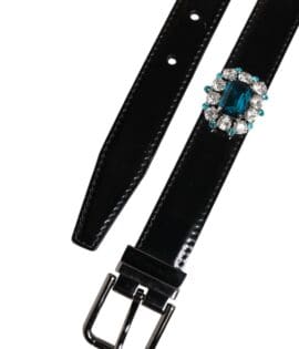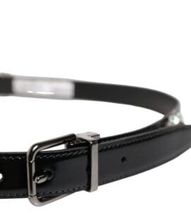 Dolce & Gabbana Black Embellished Metal Logo Buckle Belt