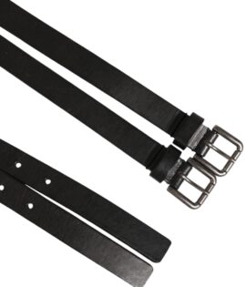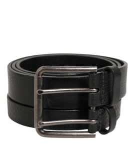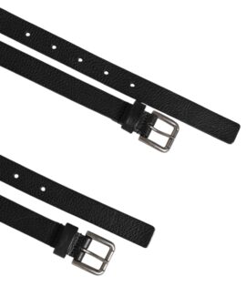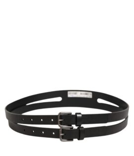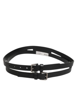 Dolce & Gabbana Black Double Strap Leather Silver Buckle Belt