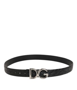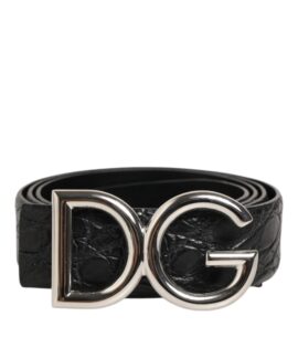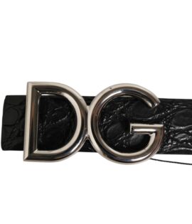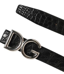 Dolce & Gabbana Black Exotic Leather DG Logo Buckle Belt
