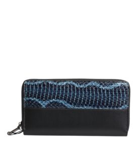 Dolce & Gabbana Black Blue Exotic Leather Embossed Continental Wallet