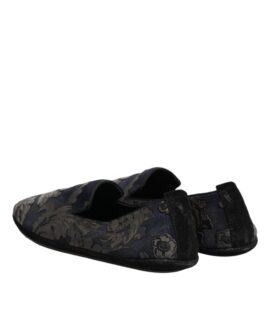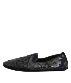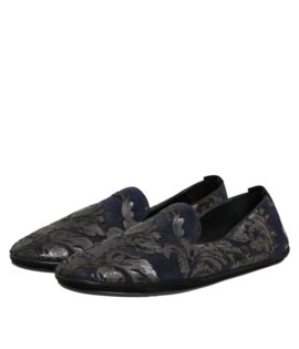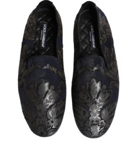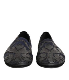 Dolce & Gabbana Black Jacquard Leather Slip On Loafers Shoes