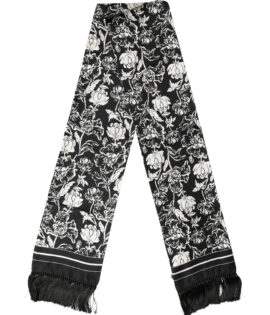 Dolce & Gabbana Black White Silk Floral Print Fringe 136cm X 15.5cm Scarf