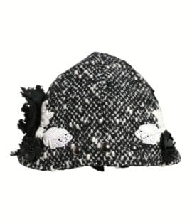 Dolce & Gabbana Black Wool White Floral Embellished Cloche Hat