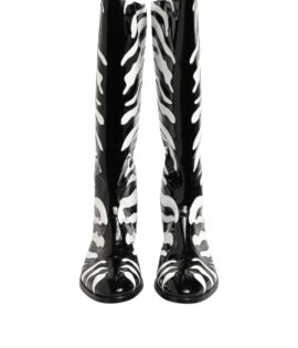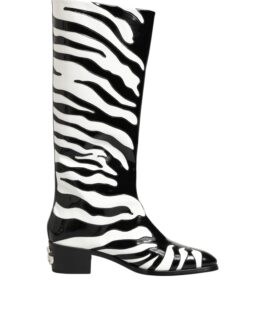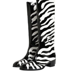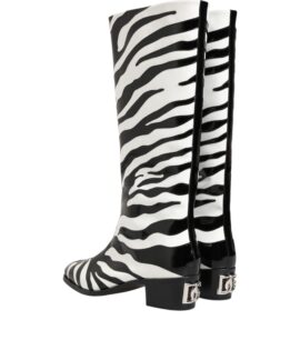 Dolce & Gabbana Black White Zebra Over The Calf Boots Shoes