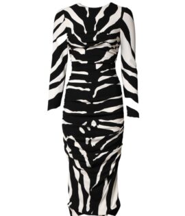 Dolce & Gabbana Black White Zebra Cady Calf Length Dress