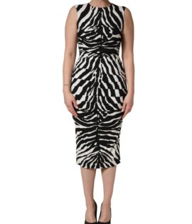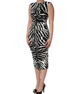 Dolce & Gabbana Black White Zebra Viscose Sheath Midi Dress