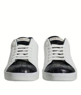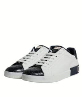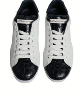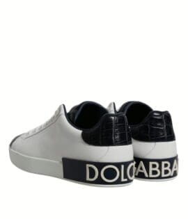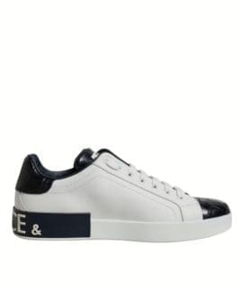 Dolce & Gabbana White Black Leather Portofino Sneakers Shoes