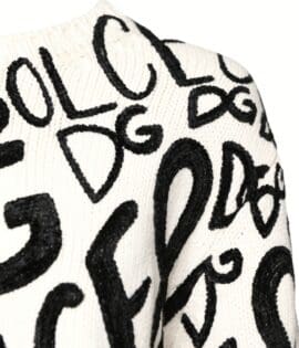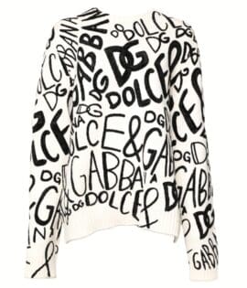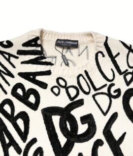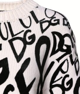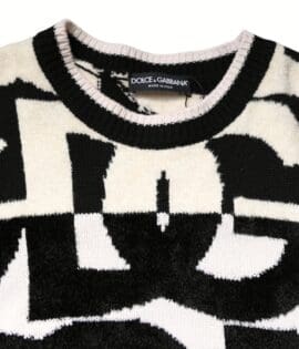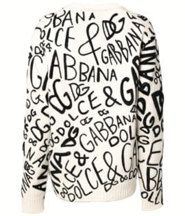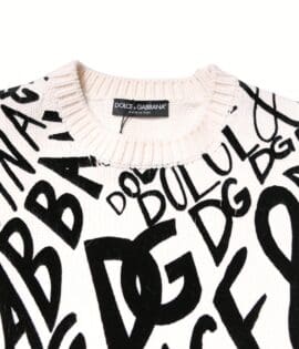 Dolce & Gabbana White Black Logo Print Women Pullover Sweater