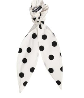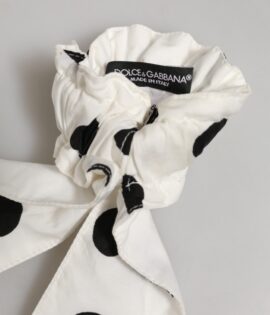 Dolce & Gabbana Scrunchie White Cotton Polka Dot Scarf Tie Accessory Hair