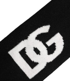 Dolce & Gabbana Men Black White Cashmere Logo Head Band Hat