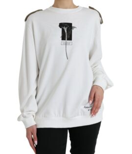 Dolce & Gabbana White Floral Cotton Crew Neck Pullover Sweater