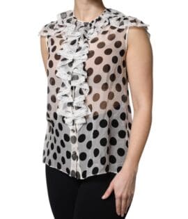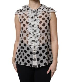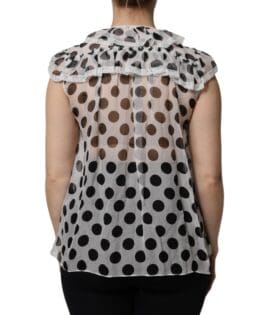 Dolce & Gabbana White Black Polka Dot Cotton Sleeveless Top