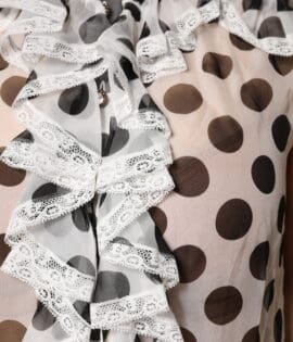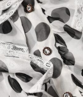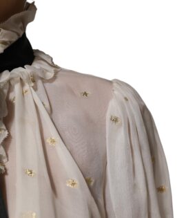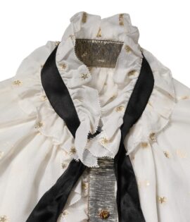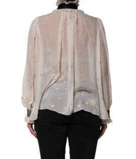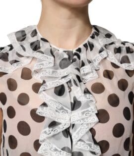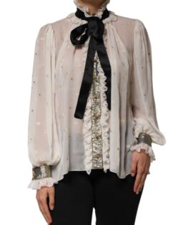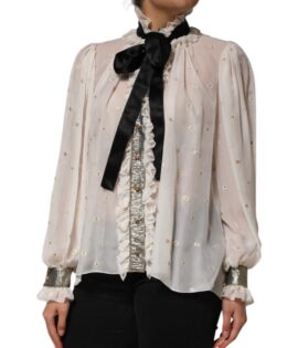 Dolce & Gabbana White Black Silk Long Sleeve Ascot Collar Top