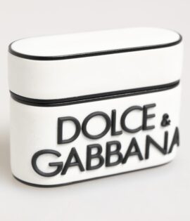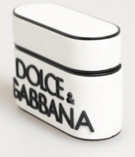 Dolce & Gabbana White Black Rubber Logo Embossed Accessory Airpods Case