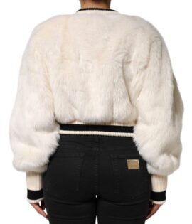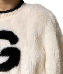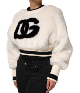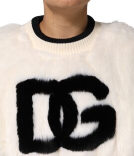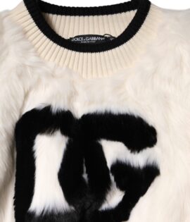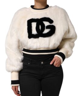 Dolce & Gabbana White Cropped Faux Fur DG Sweatshirt Sweater