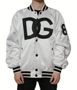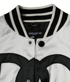 Dolce & Gabbana White Polyester Logo Full Zip Bomber Jacket