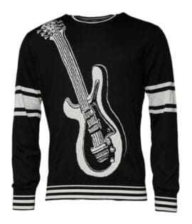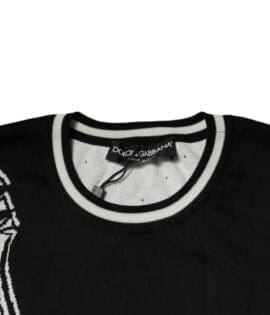 Dolce & Gabbana Black White Guitar Silk Crew Neck Sweater