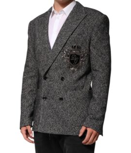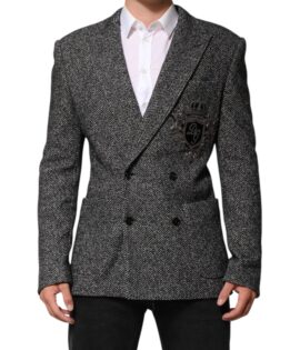 Dolce & Gabbana Black White Double Breasted Men Suit Blazer