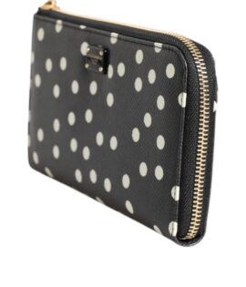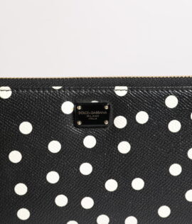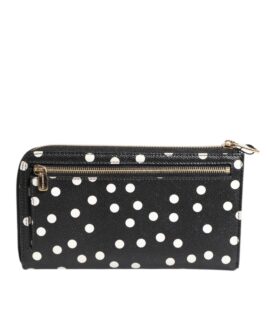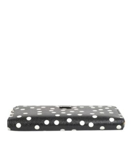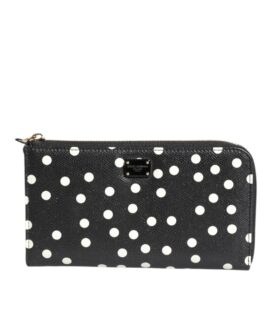 Dolce & Gabbana Black White Dotted Leather Zip Around Continental Wallet