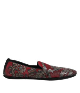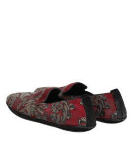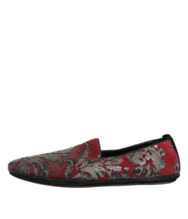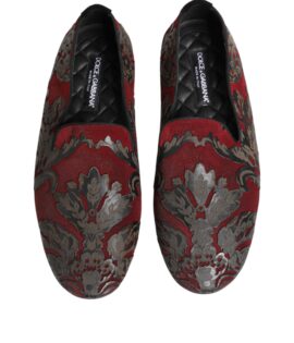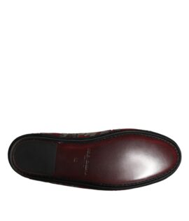 Dolce & Gabbana Bordeaux Jacquard Leather Slip On Loafer Shoes