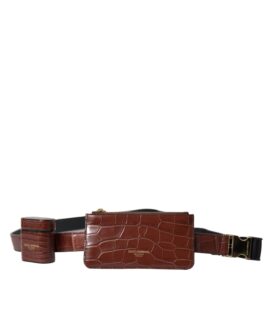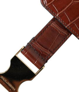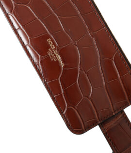 Dolce & Gabbana Brown Alligator Leather Airpods Case Coin Purse Wallet