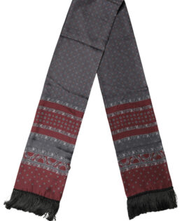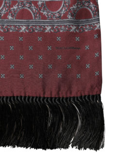 Dolce & Gabbana Burgundy Gray Patterned Fringe Foulard 141cm X 15.5cm Scarf