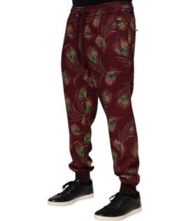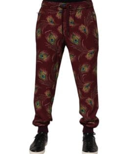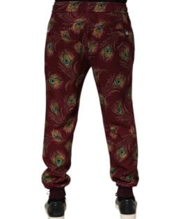 Dolce & Gabbana Burgundy Peacock Feather Print Jogger Pants