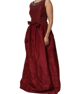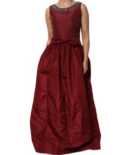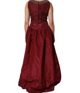 Dolce & Gabbana Burgundy Silk Beaded Evening Gown Dress