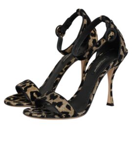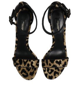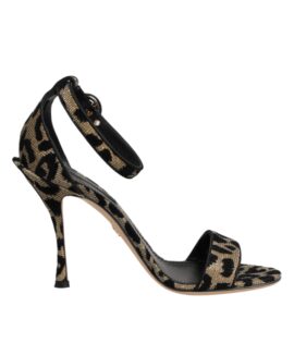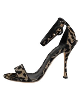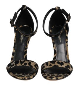 Dolce & Gabbana Gold Leopard Ankle Strap Heels Sandals Shoes