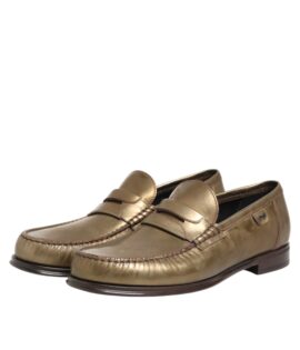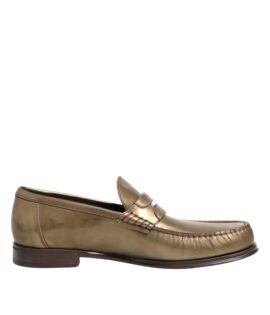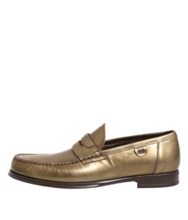 Dolce & Gabbana Gold Leather Slip On Dress Men Loafers Shoes