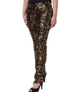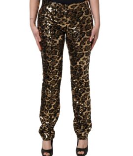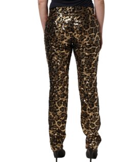Dolce & Gabbana Gold Leopard Sequined Straight Trouser Pants