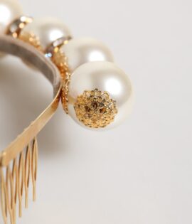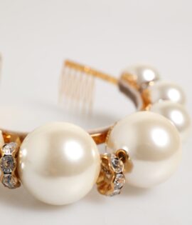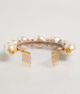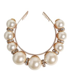 Dolce & Gabbana Gold Pearl Crystal Embellished Tiara Hair Accessory Headband