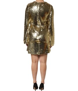 Dolce & Gabbana Gold Sequin Long Sleeve Mini Dress