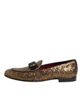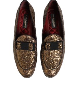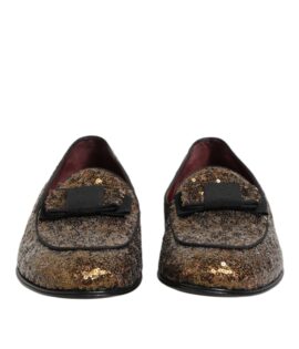 Dolce & Gabbana Gold Sequin Crystal Flat Women Loafers Shoes