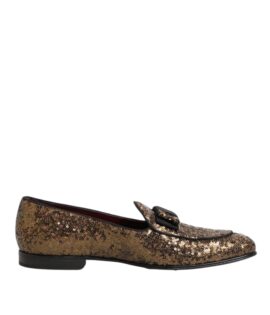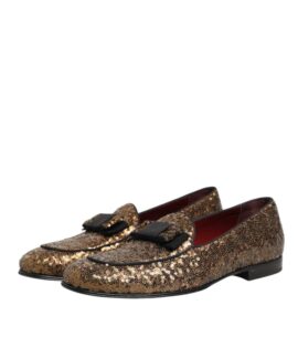 Dolce & Gabbana Gold Sequined Slip On Loafers Men Dress Shoes