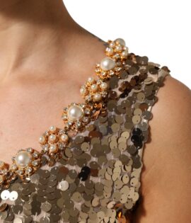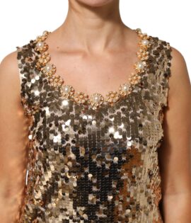 Dolce & Gabbana Gold Sequined Nylon A-line Sheath Mini Dress